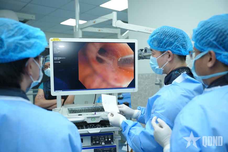 The technical team from the Respiratory Center, Military Hospital 103, performed the EBUS-TBNA technique to diagnose causes of mediastinal lymph node enlargement under the guidance and support of Japanese experts.