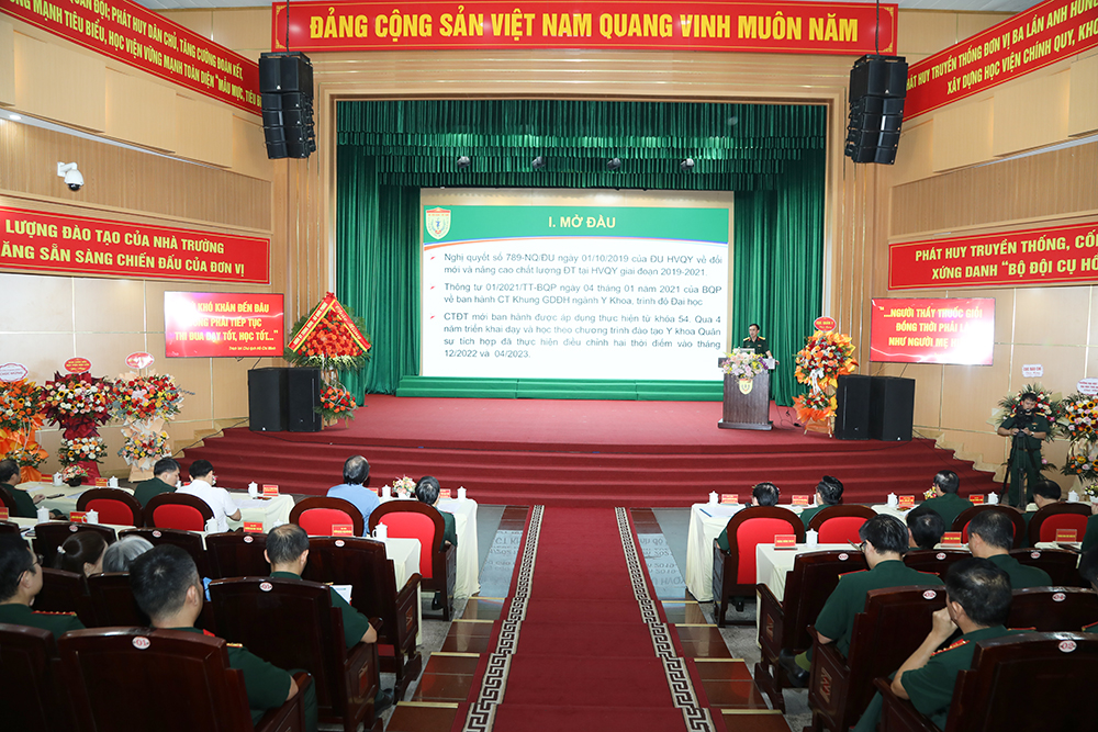 This conference has provided the delegates with an opportunity to share, exchange, and discuss the feasible solutions to the development of integrated training programs, thereby ensuring that the graduates will meet the prescribed output standards and are qualified to participate in the national exam for certificates of medical practice. The reports at the conference were meticulously prepared, thus comprehensively illustrating the current process of building, adjusting and implementing the military medical training program of general practitioners according to the 01/2021 Circular/TT-BQP dated January 4th, 2021 of the Ministry of National Defense. This has emphasized the analysis and close evaluation of the current situation, the difficulties, and the goals achieved through this process, not to mention the proposal of practical feasible solutions for improvement of the quality of training programs.